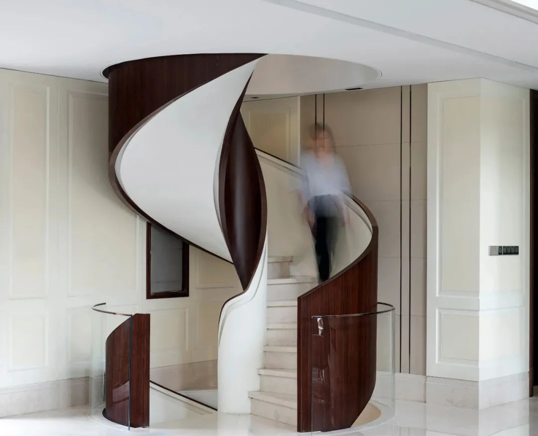 說超樓梯界的顏值擔(dān)當(dāng),不得不提的就是"旋轉(zhuǎn)樓梯"。作為空間連通的樞紐,靈動(dòng)朝選、宛若舞動(dòng)著的紐帶 不僅完美的符合其本身的功能性,還成為了空間的一部分甚至是焦點(diǎn),給予空間超乎想象的視覺美感,